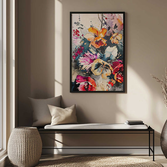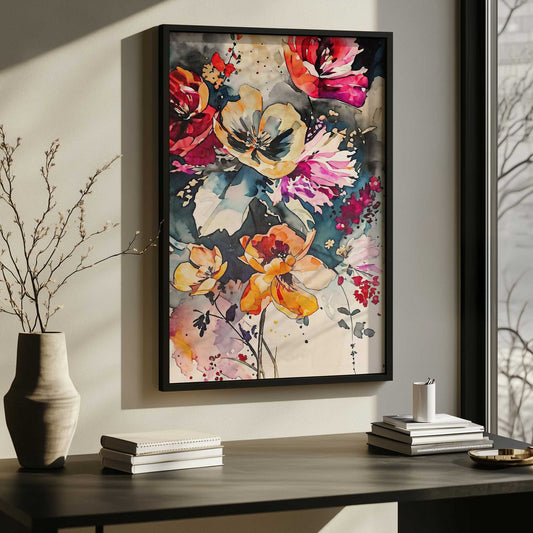 Bold Watercolor Florals in Orange, Crimson, and Fuchsia Art Print