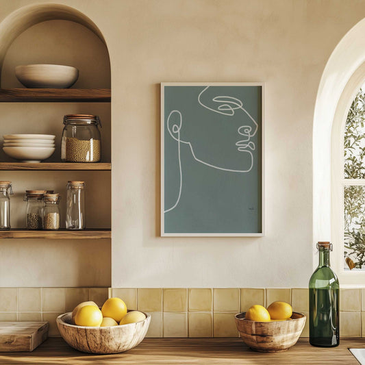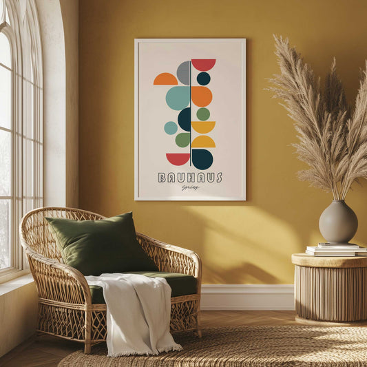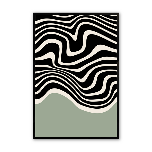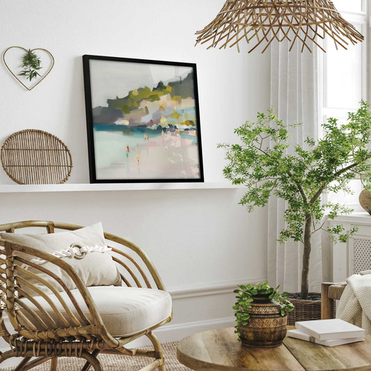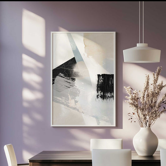 Neutral Geometric Abstract with Black Brushstroke Art Print