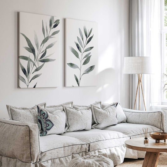 Soft Green Leaves Canvas Print, Set of 2
