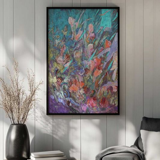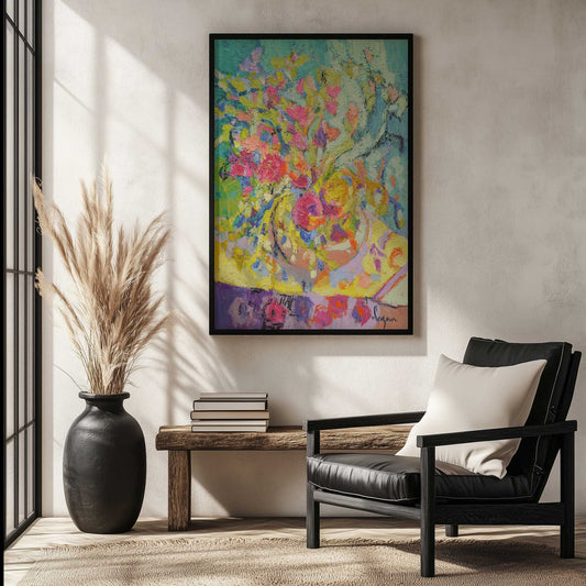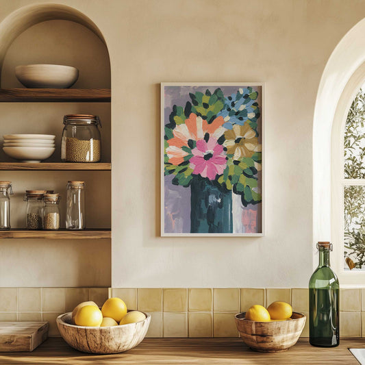 Bright Blooms in a Teal Vase Art Print