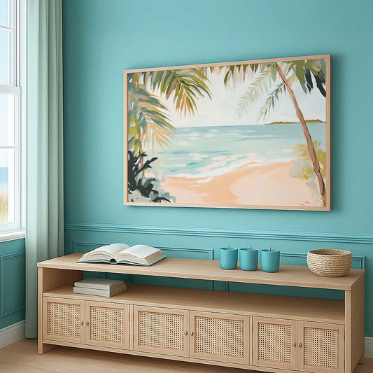 Coastal Shoreline with Palm Trees and Aqua Waves Art Print