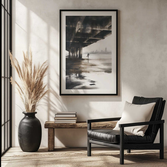 Surfer Walking Under the Pier Art Print