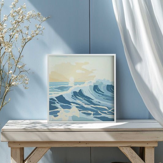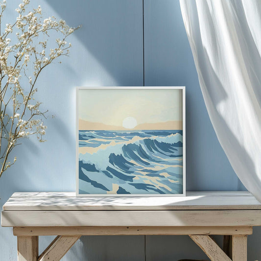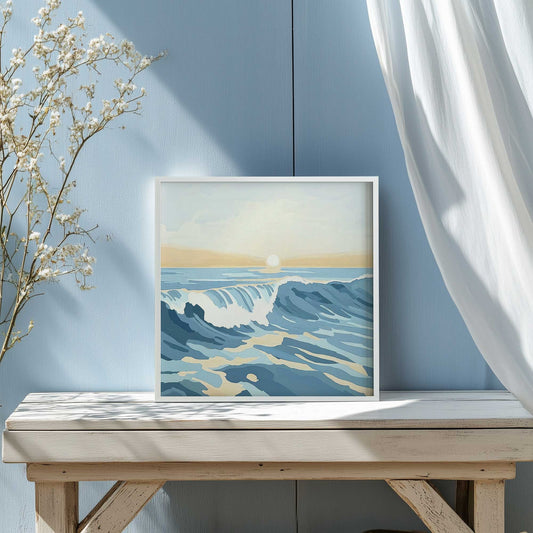 Soft Coastal Shoreline with Gentle Waves and Rocks I Print