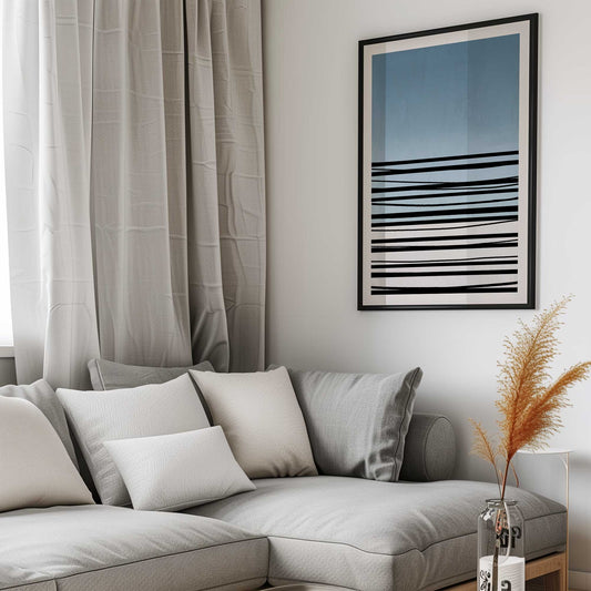 Minimalist Blue and Black Stripes II Art Print