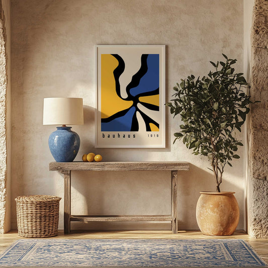 Twisted Yellow and Blue Bauhaus Art Print