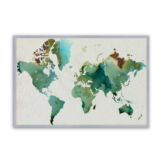 Earthy Toned Watercolor World Map with Organic Vibe Paper Print