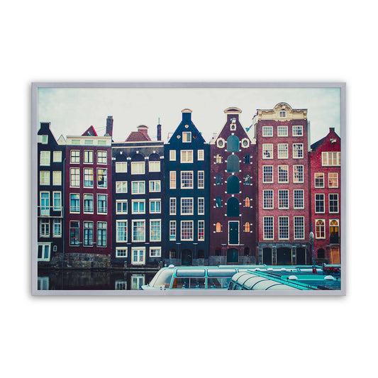 Historic Amsterdam Rowhouses in Moody Canal Light Paper Print