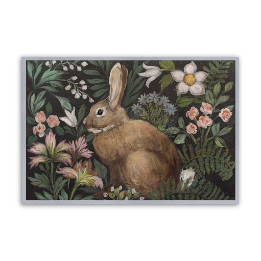 Brown Bunny in a Garden of Folk Flowers on Black I Paper Print