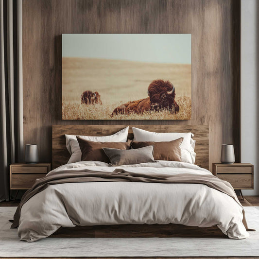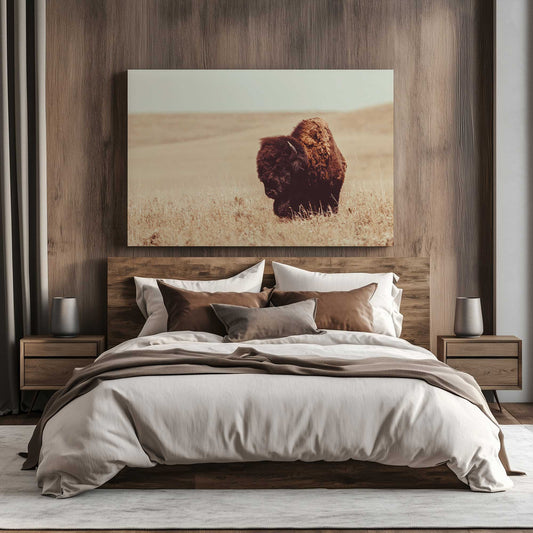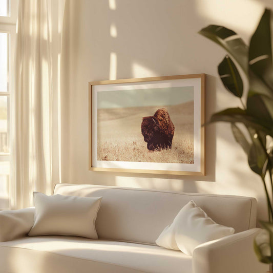 Bison Roaming a Snowy Plain Beneath Purple Skies Art Print
