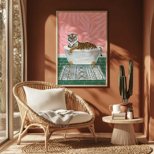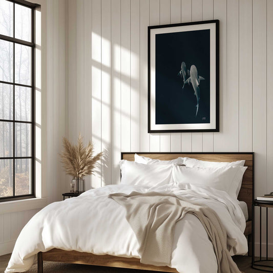 Parent and Baby Penguin Snuggled Under Blush Clouds Art Print