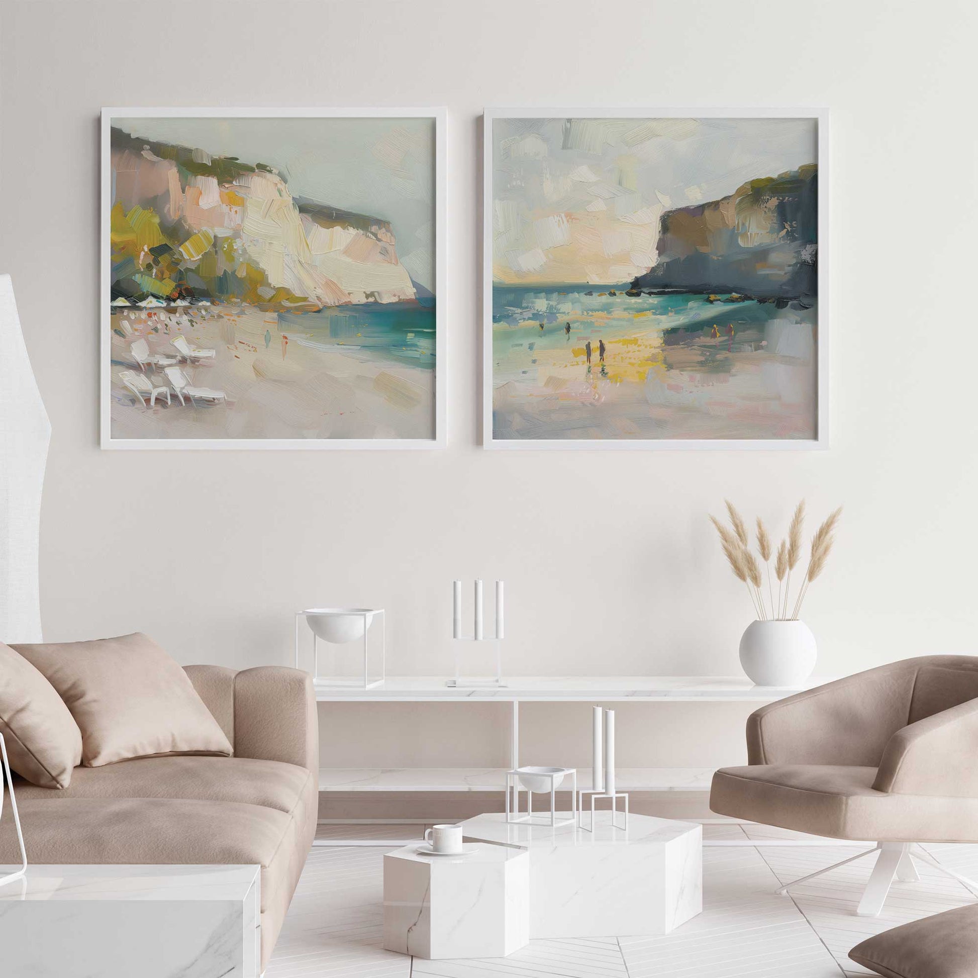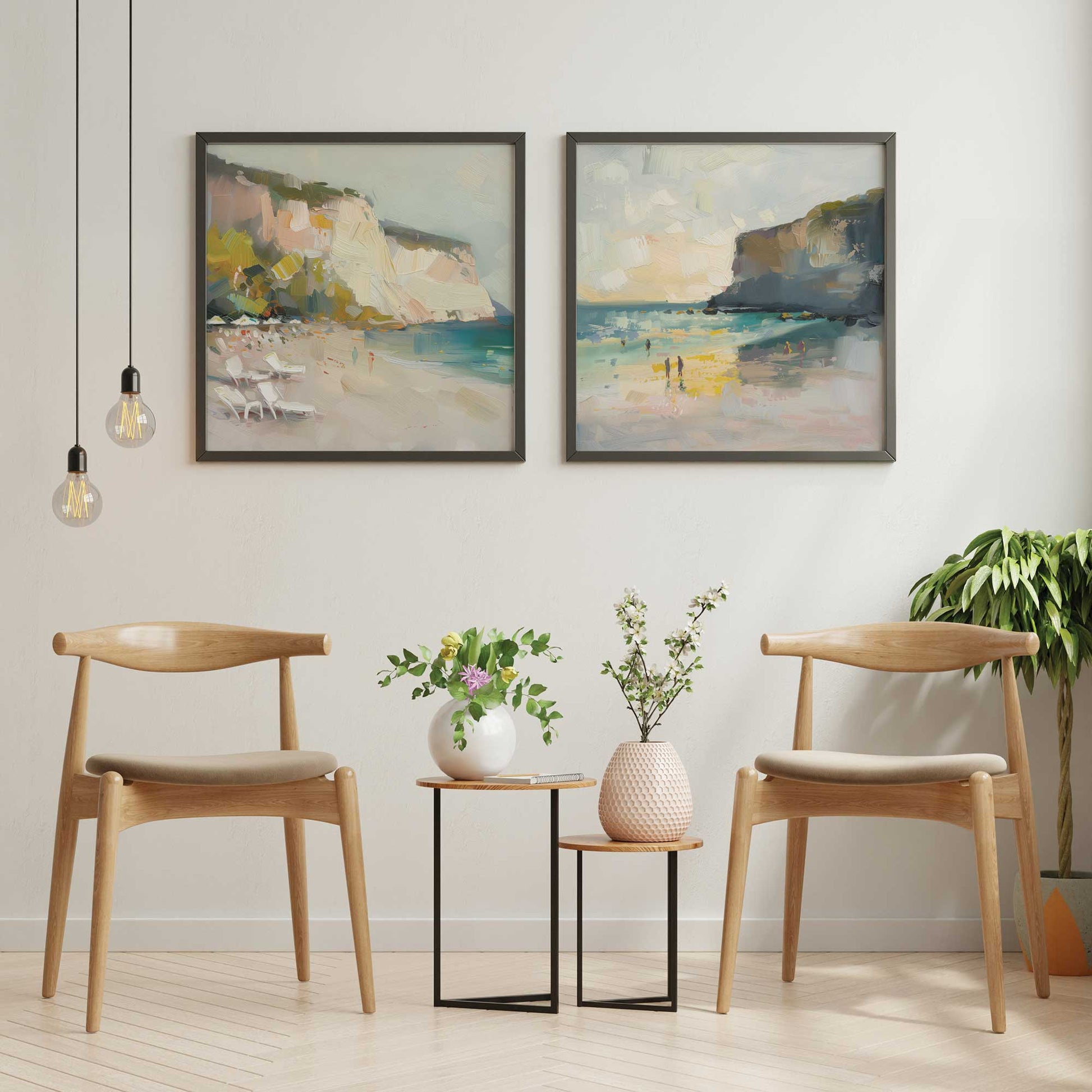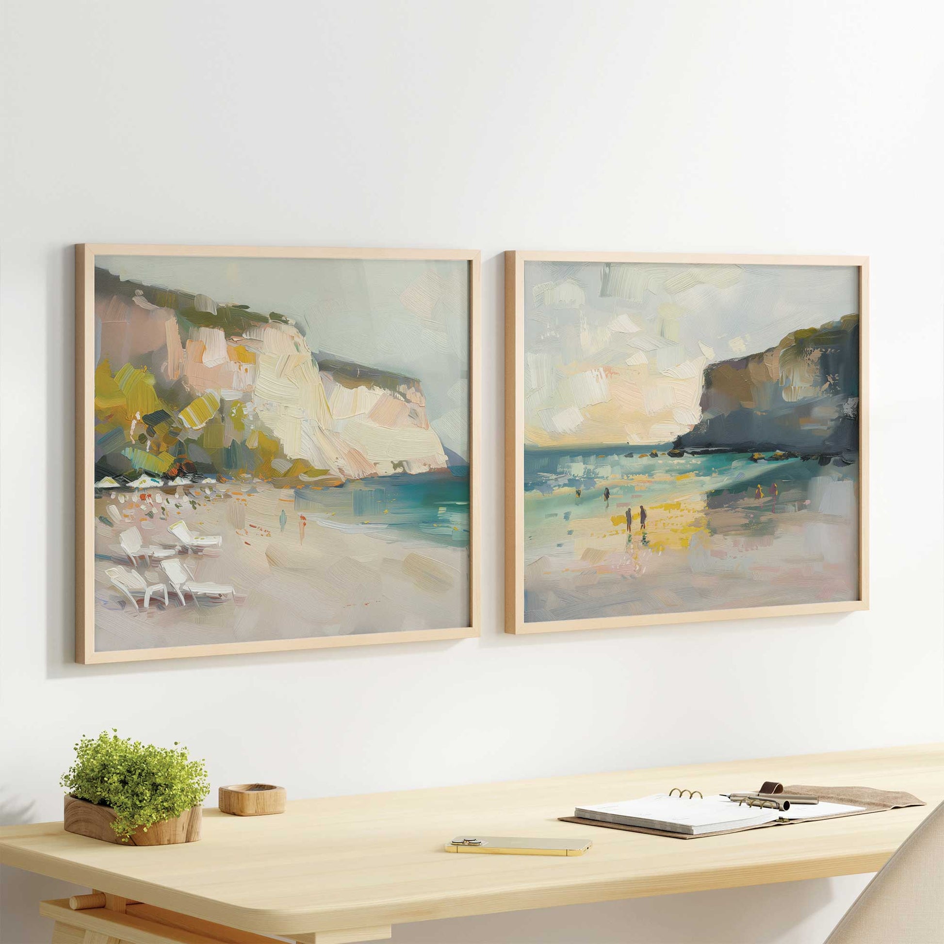 Calm Cliffside Coast Pair Art Print, Set of 2