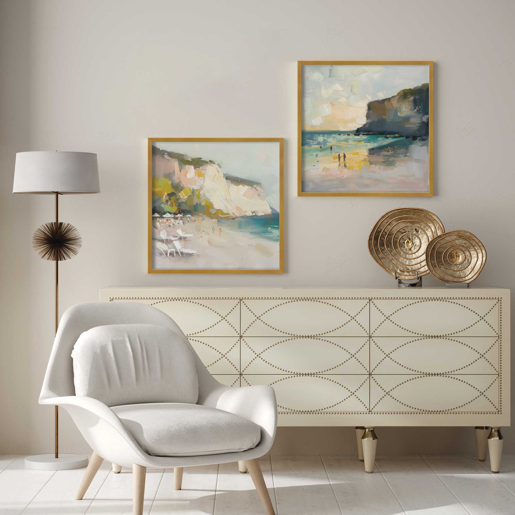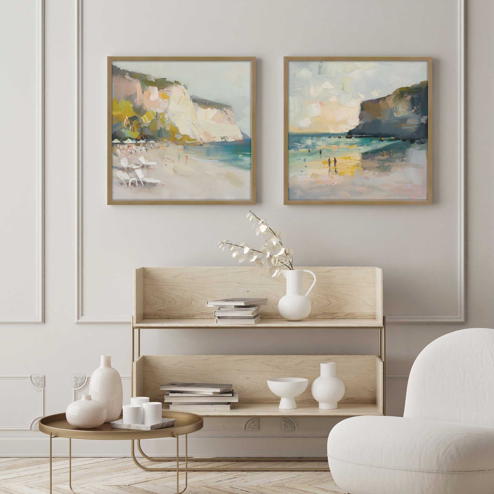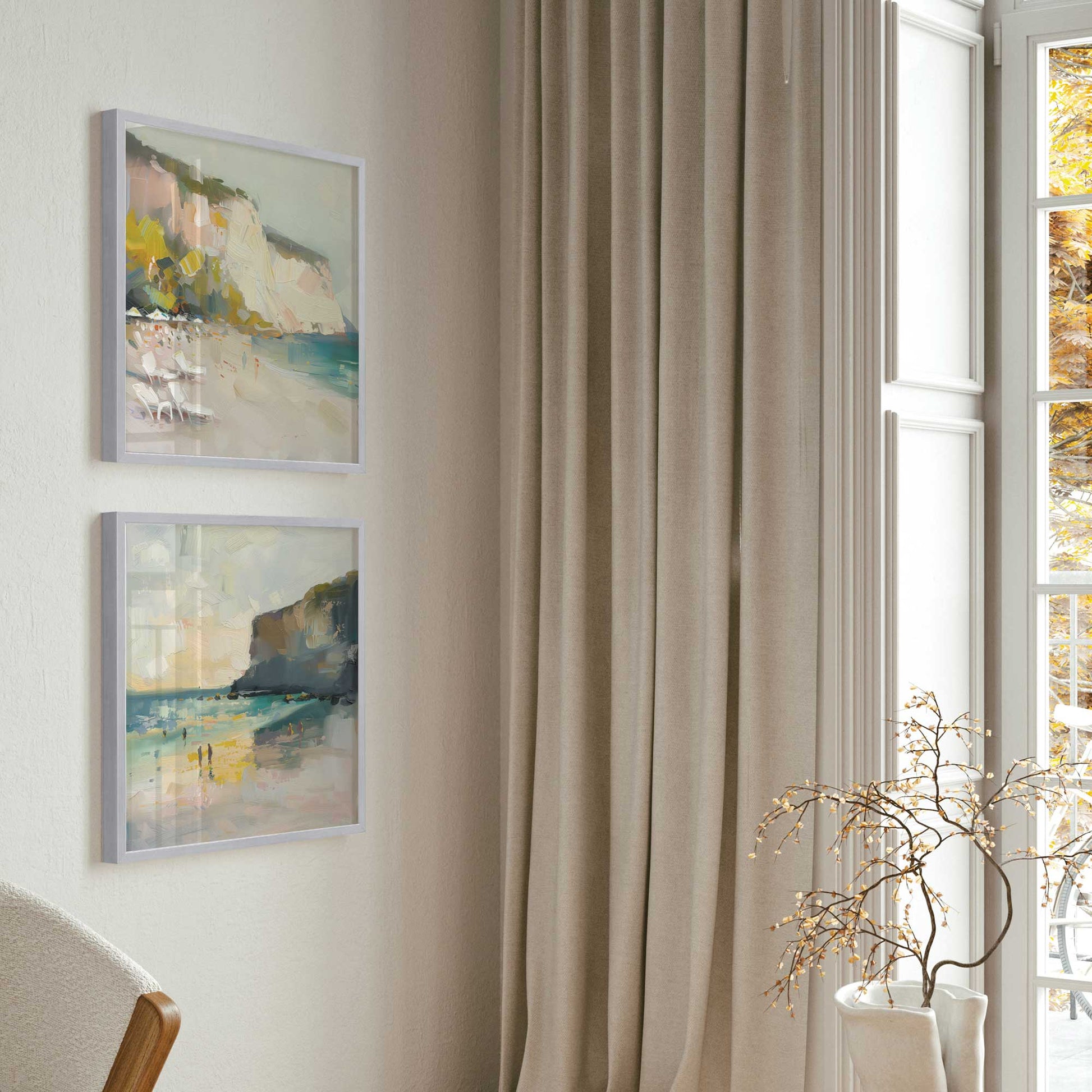 Calm Cliffside Coast Pair Art Print, Set of 2